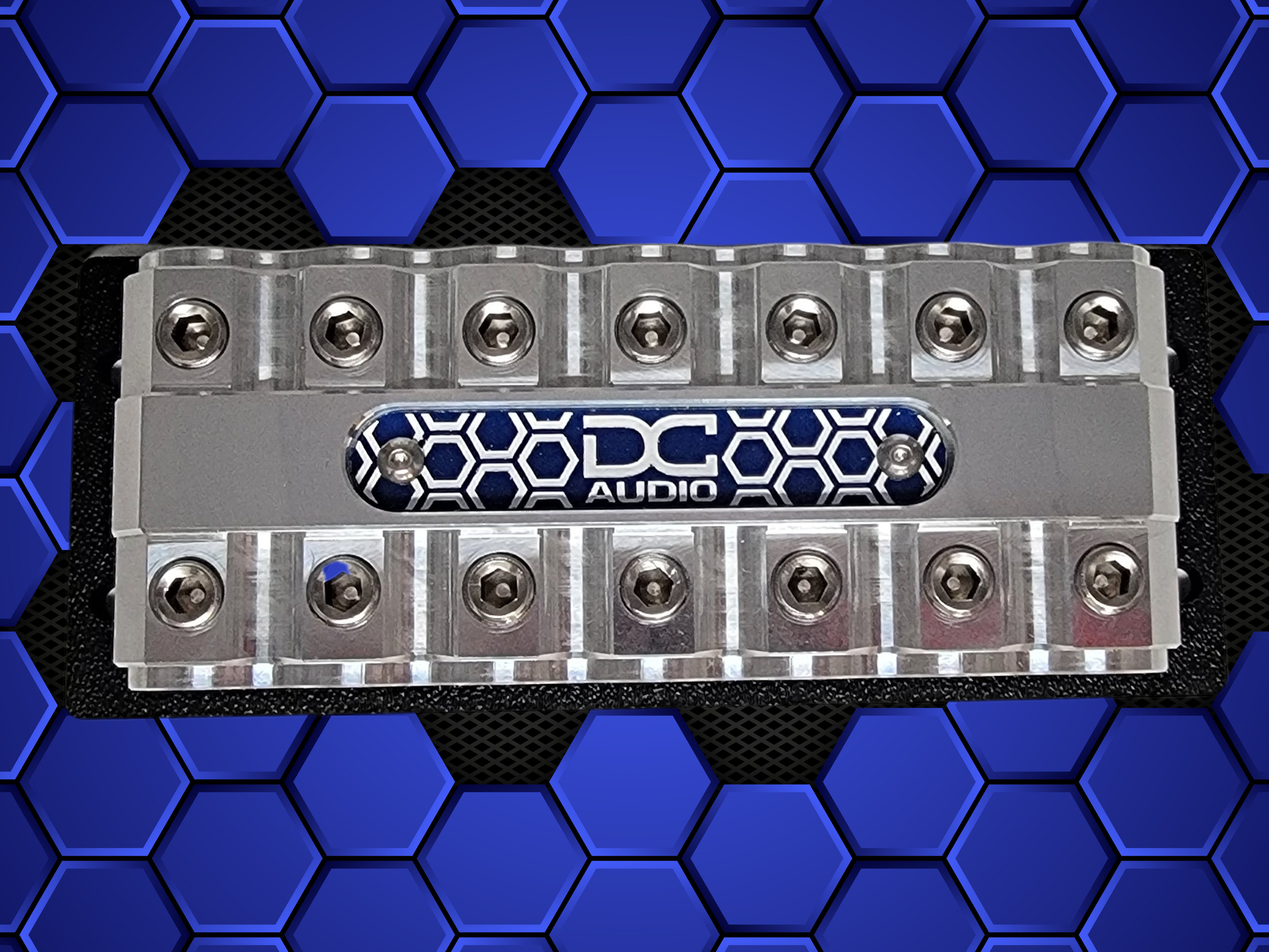 Machined DC Audio Distribution block 14 total 1/0 awg in/outputs